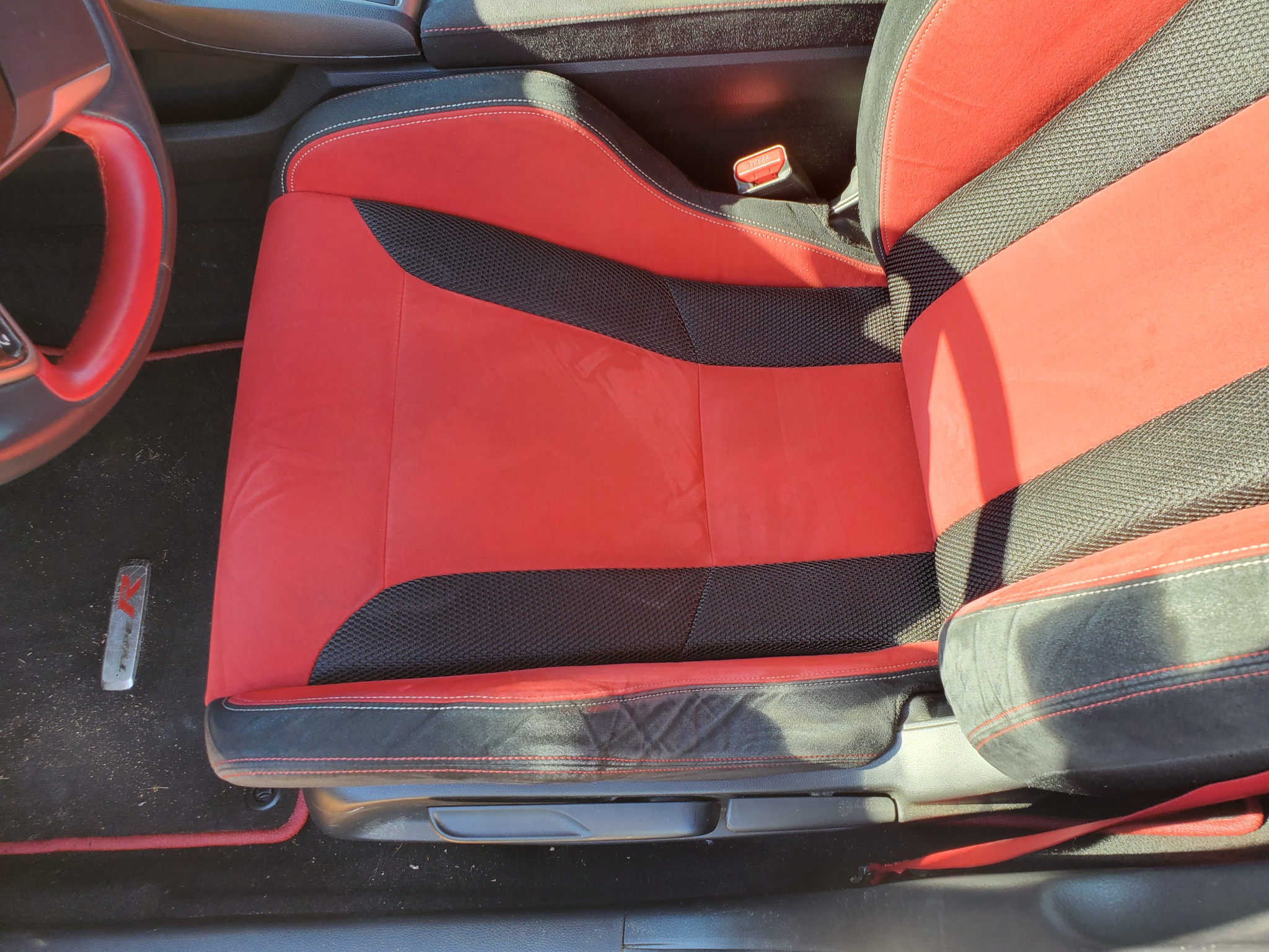 With its 20" alloy wheels, chrome accents, and aggressive styling, this Civic Type R commands attention on the road. The striking exterior is matched by a comfortable and high-tech interior, featuring supportive sport seats with Type R logo detailing and dual-zone air conditioning to keep you cool on those hot summer days.