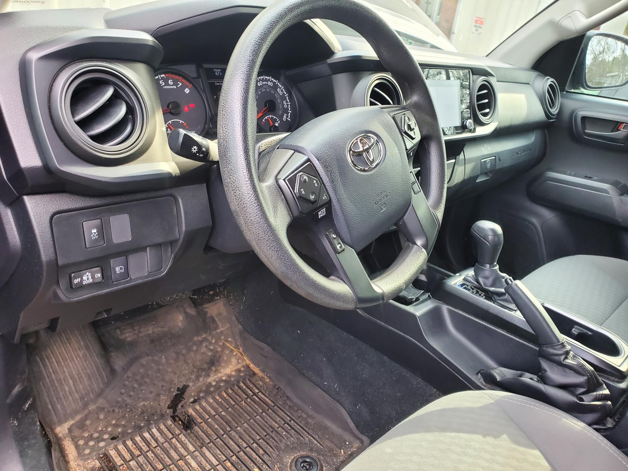 The exterior of this Tacoma is as rugged as it is stylish, featuring a body-colored front bumper with 1 tow hook and black side windows trim for a modern look. The interior is just as impressive, with comfortable front bucket seats and a 60-40 folding split-bench rear seat for added versatility. Stay connected on the go with wireless phone connectivity and Wi-Fi Connect, allowing you to stream your favorite music and stay in touch with friends and family.