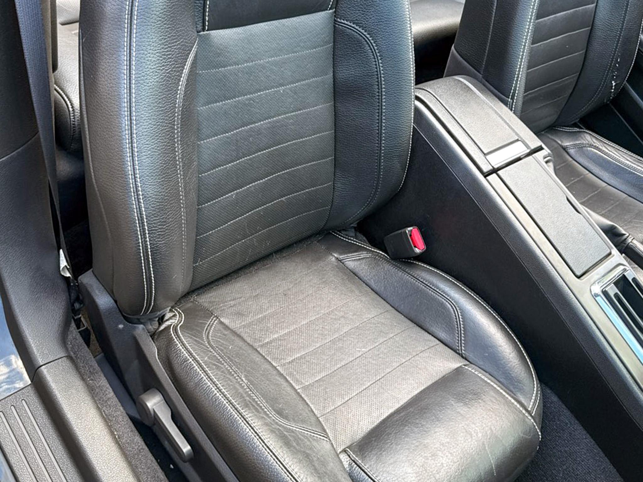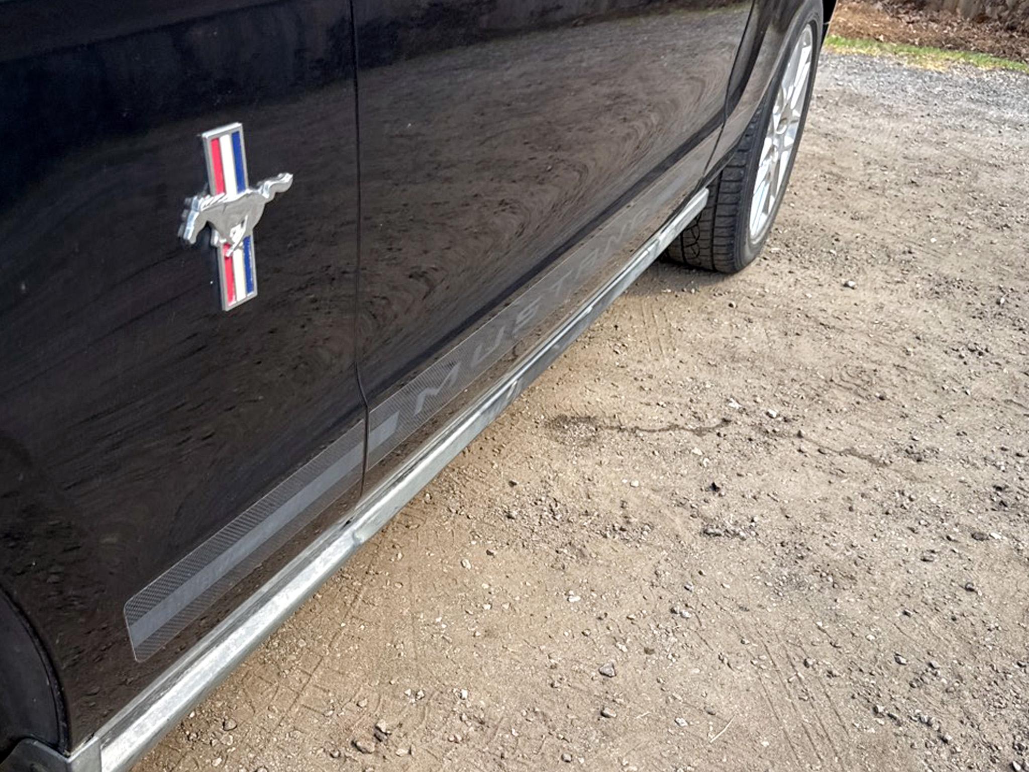 Featuring a striking exterior design with complex reflector halogen headlamps and LED sequential tail lamps, this Mustang demands attention wherever you go. The black power mirrors include an integrated blind spot mirror, enhancing safety and convenience on the road. The rear quarter-mounted antenna and stainless steel dual exhaust add a touch of sporty elegance to the overall look of the car.